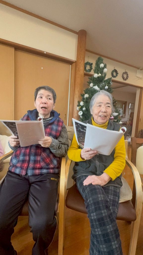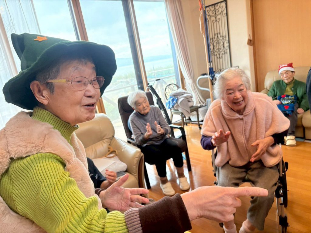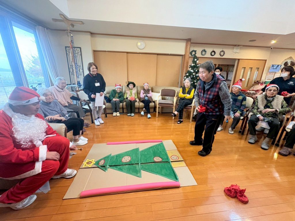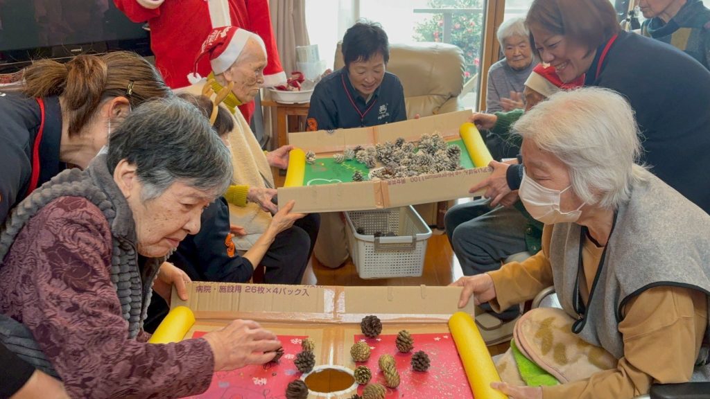 年末の忘年会では、グループホーム暖オリジナルのシーズンレクリエーションゲーム「松ぼっくり落とし」や「ツリーでポン!」で大いに盛り上がりました![]()